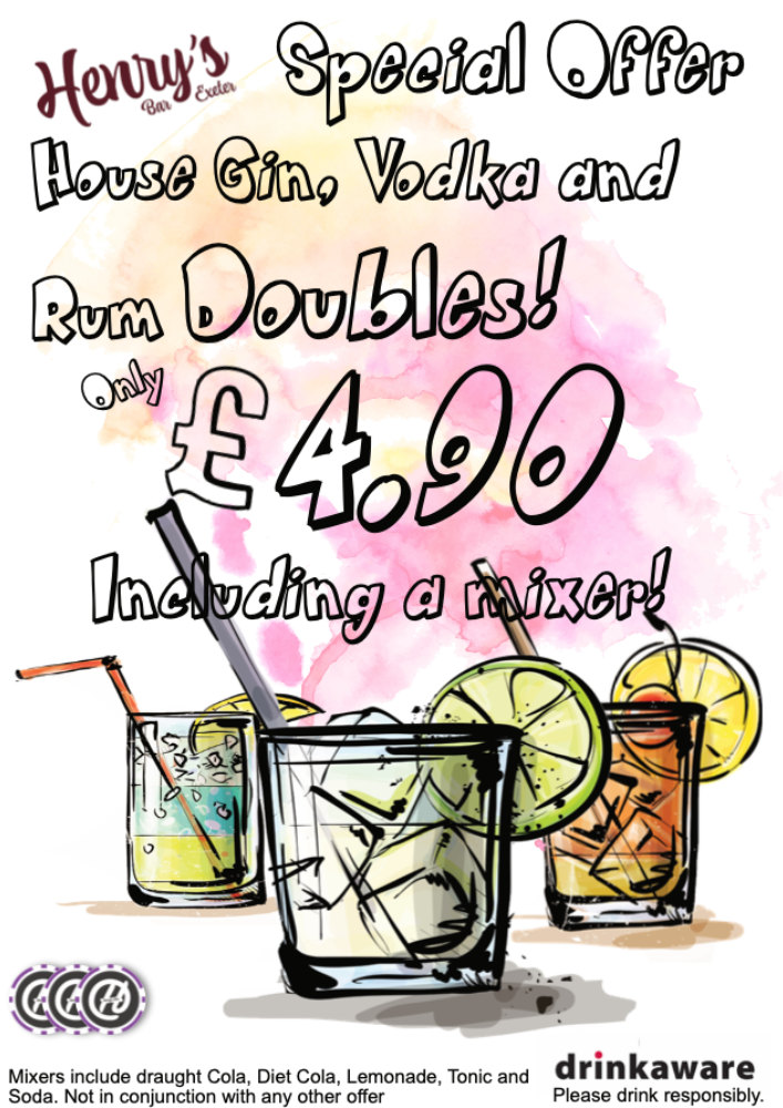 Henry’s Bar has a great atmosphere, and is frequented by a mixture of locals and students alike in this vibrant part of Exeter.